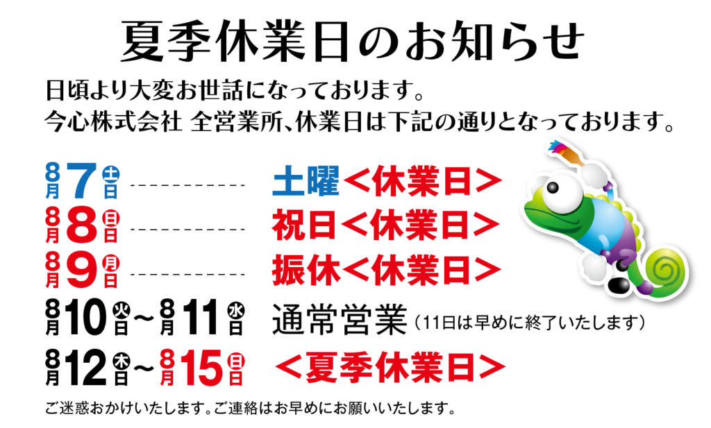 夏季休業のご案内
