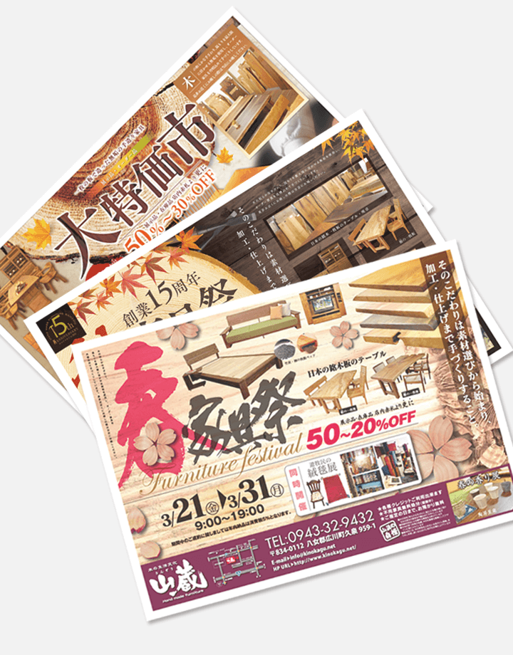 少ない枚数でも快く引き受けてもらえて、チラシ以外の物も今心さんに頼める点も魅力的でした。